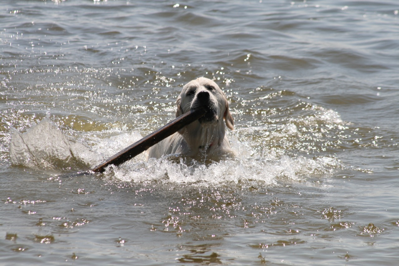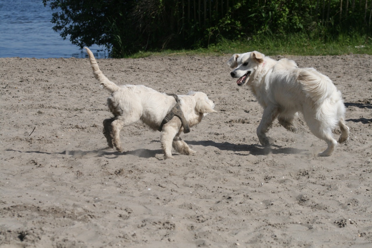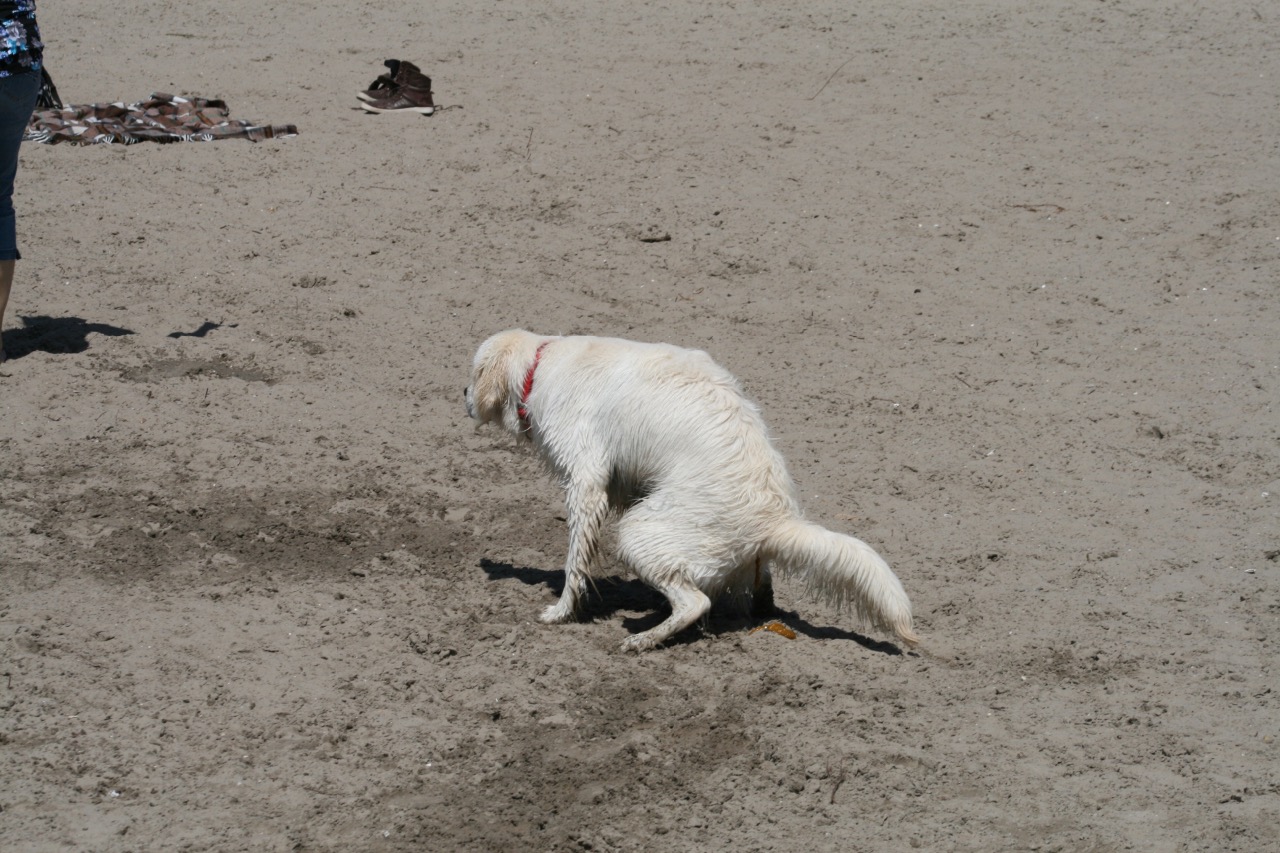 Vrijdag naar de ringtraining en daar heeft hij verschrikkelijk goed zijn best gedaan, misschien door zijn sloomheid en darmproblemen, maar knap was het wel. Zaterdag lekker een beetje om de baas en bazin heen gelopen, maar hij is nog steeds niet in goede doen. Zondag was het weer feest. Met alle kleinkinderen naar het strand geweest en daar heerlijk gespeeld en gezwommen. Wat een heerlijk weer. Zo zou het de hele vakantie moeten zijn.